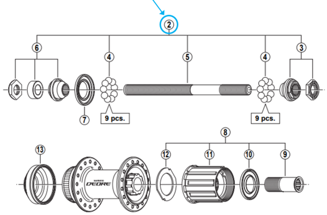 Shimano Axe complet FH-M595 146 mm